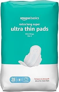 Amazon Basics Ultra Thin Pads with Flexi-Wings for Periods, Extra Long Length, Super Absorbency, Unscented, Size 3, 28 Count, 1 Pack (Previously Solimo)