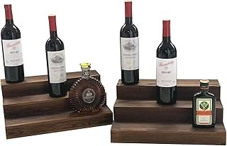 Liquor Bottle Stand 2 Pack, Holds 24 Bottles,3 Tier Liquor Bar Bottle Display Shelf, Real Wood,Tabletop Wine Rack, Bar Shelf Stand for Liquor,Bar Display,Home Storage (Light Tan)