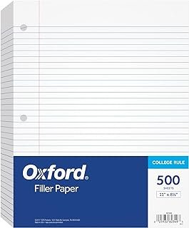 Be the first to review “Oxford Loose Leaf Paper, Filler Paper, Notebook Paper, 8-1/2″ x 11″, College Rule, 3-Hole Punched, Paper for 3-Ring Binders, 500 Sheets Per Pack (62349)” Cancel reply