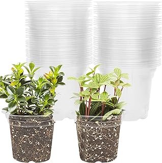 winemana 4 Inch Seed Starter Tray for Vegetable Herb Lettuce Seeds, Plant Pots for Potting Soil Indoor Plants, Clear Nursery Pots Plastic Planting Pots Garden Flower Pots- 60 Packs